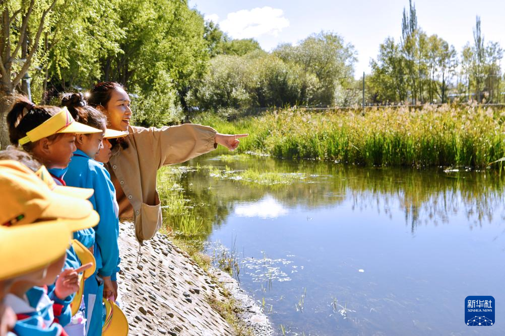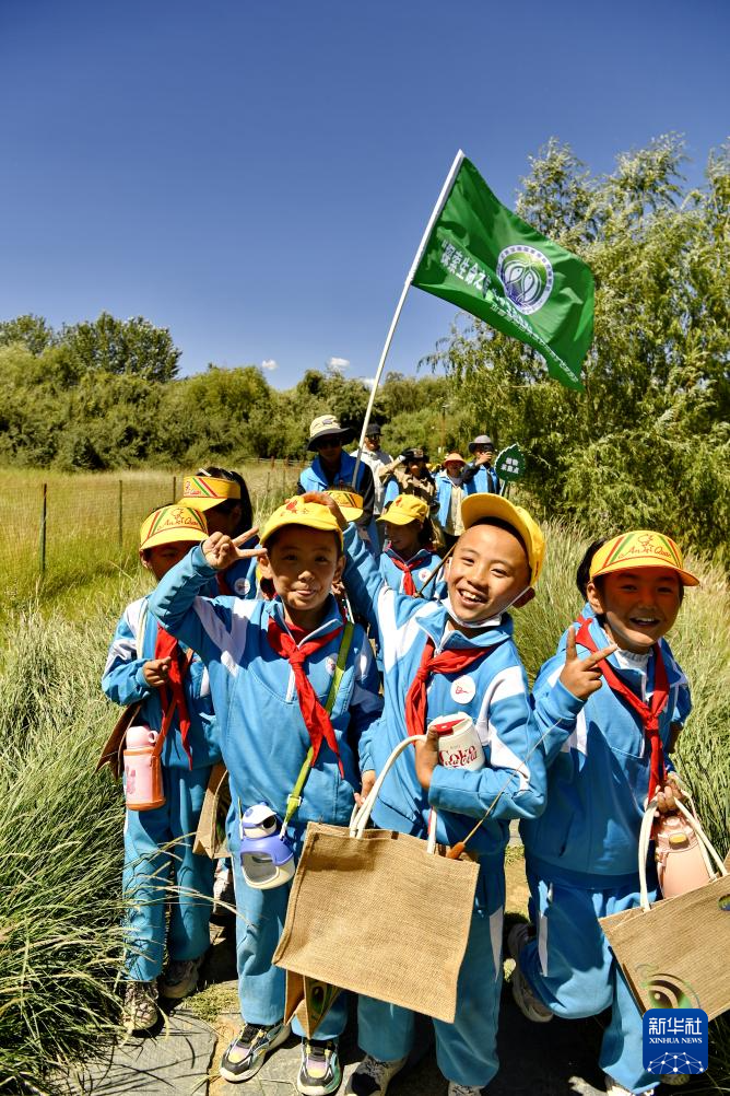 8月15日,拉鲁小学的学生们在拉鲁湿地国家级自然保护区开展生态科普研学活动。