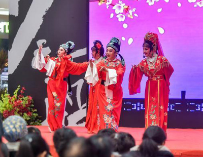 11月16日,青年志愿者在姚江镇山汀村协助亲子家庭竞猜越剧选段。
