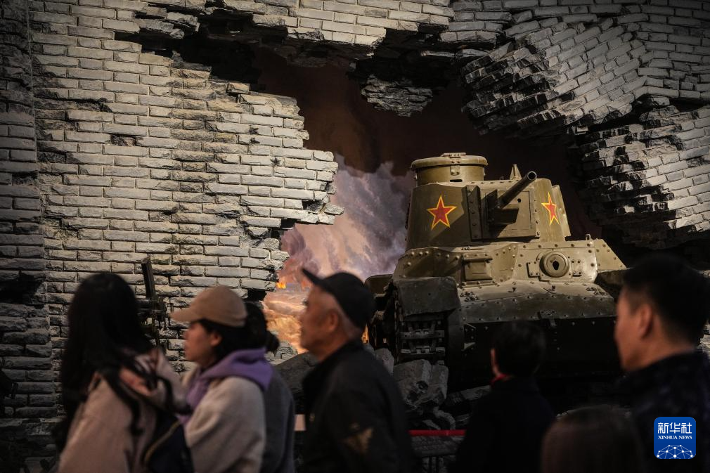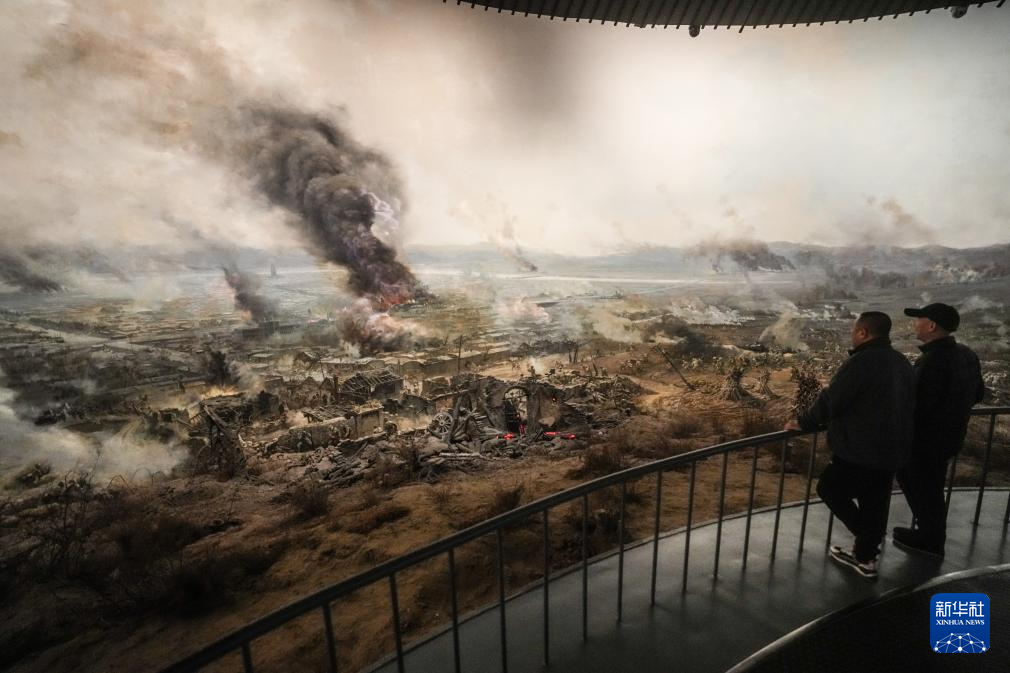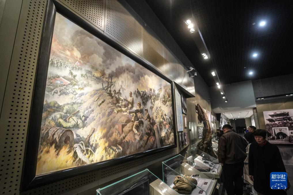 4月1日,观众在辽沈战役纪念馆内观看全景画《攻克锦州》。
