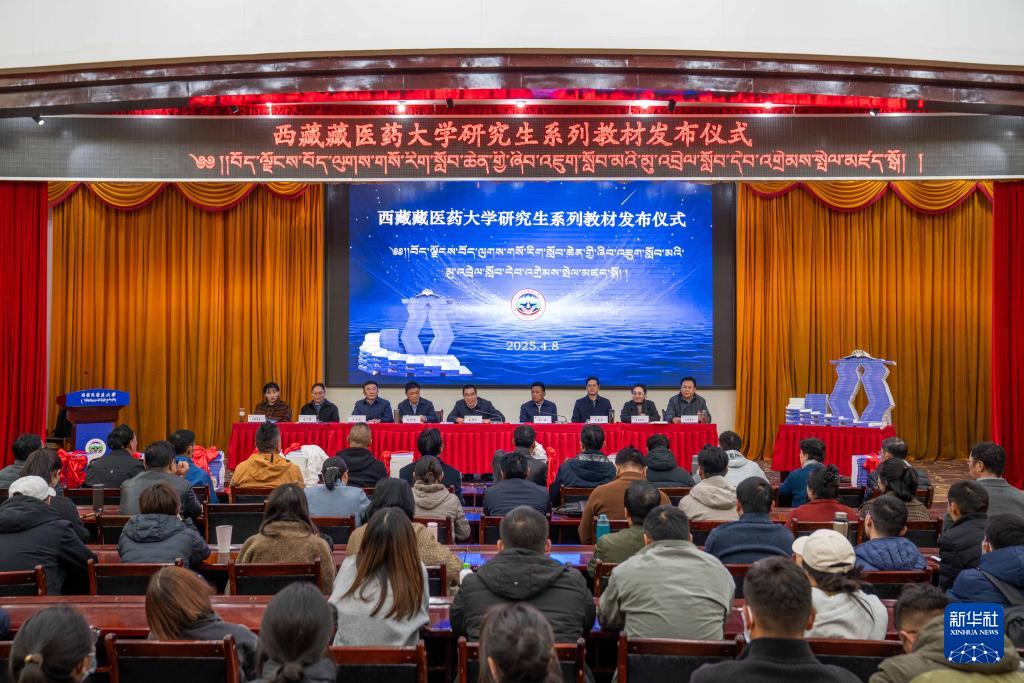 4月8日拍摄的藏医药高等教育首套研究生系列教材发布仪式现场。