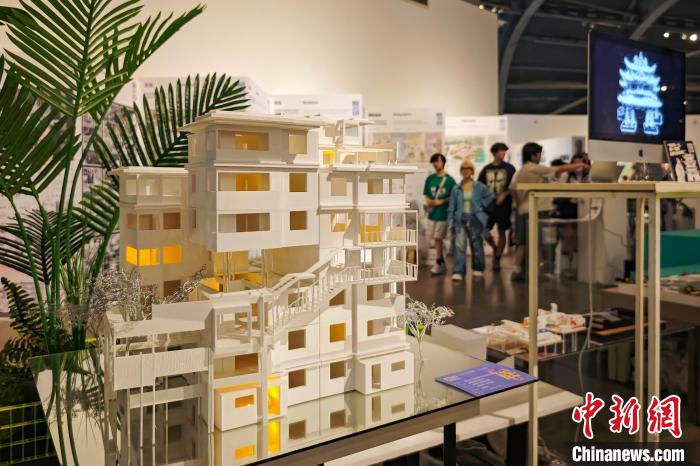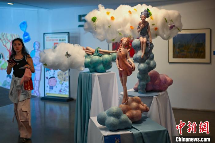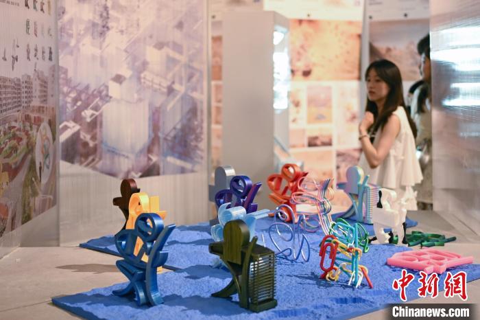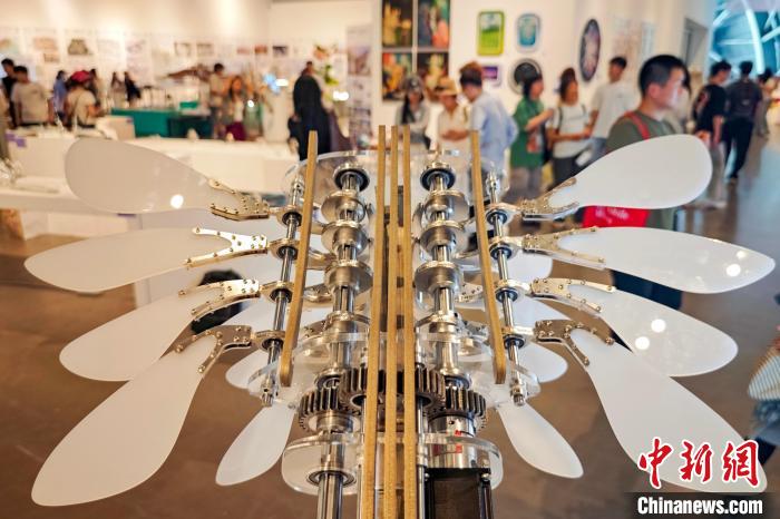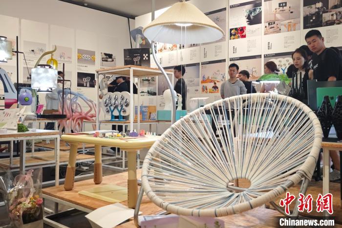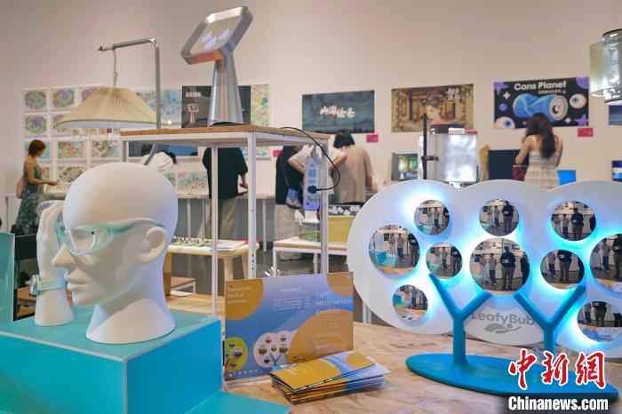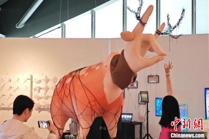 图为观众与展出的毕业作品互动。中新社记者 泱波 摄