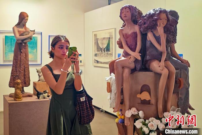 5月20日,南京艺术学院“520毕业展演嘉年华”美术·设计·传媒毕业作品联展在南艺美术馆举办,集中展出该校美术与书法学院、设计学院、传媒学院、工业设计学院、人文与博物馆学院、数字艺术学院、高等职业教育学院毕业生们的毕业作品,展示毕业生对艺术的创新和多元化追求。本届520毕业展演嘉年华由南京艺术学院与南京市鼓楼区人民政府联合主办,活动主题为“拥抱 AI,数智赋能”,将推出60余项艺术展演活动,集中展示艺术院校在教学、创作与人才培养等方面深度融合数智技术的创新成果。图为观众在展厅内欣赏展出的毕业作品。中新社记者 泱波 摄