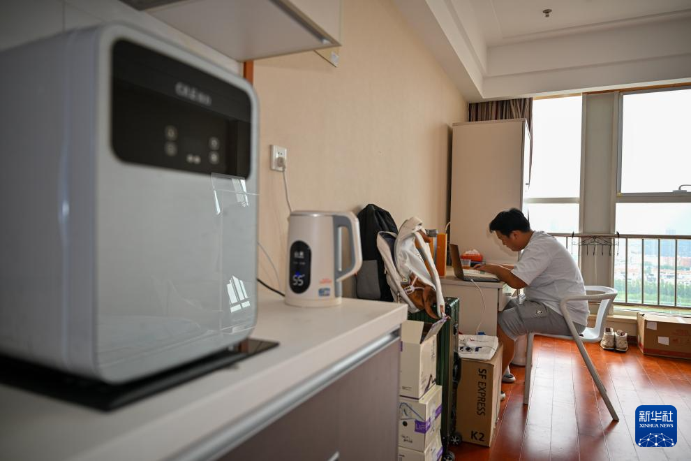 在天住领寓(棉三店),一名入住人才公寓的应届毕业生在房间内看书(7月15日摄)。