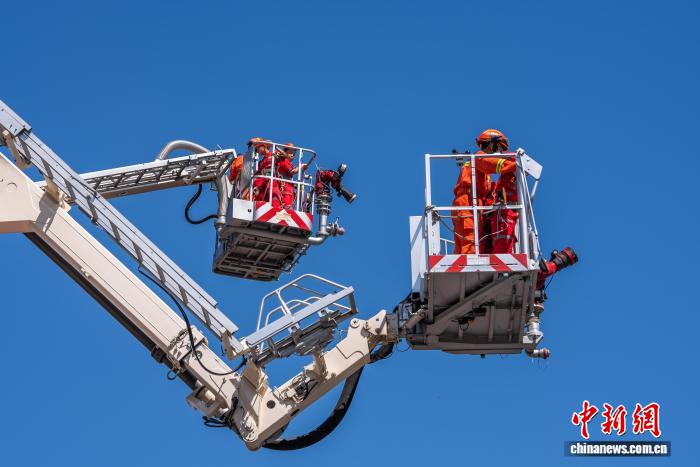 7月28日,在贵州省毕节市七星关区南环路消防救援站,孩子们正在体验消防登高云梯。罗大富 摄