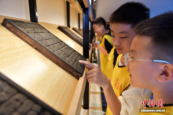 8月21日,河北省保定市竞秀区宝虹艺术博物馆,小朋友们被活字模板吸引。近年来,该区以“文化+旅游”打造非国有博物馆,截至2025年已备案10座,涵盖工艺、民俗等多领域,并通过“博物馆+研学”等创新模式,活化民间文化资源,激活文旅经济。中新社记者翟羽佳 摄