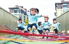 近日,浙江省长兴县龙山街道中心幼儿园的孩子们在进行跳皮筋游戏,体验运动乐趣。该园开展“乐享运动”主题活动,让孩子们通过滚“风火轮”、掷流星球等特色体育运动,享受运动带来的快乐。吴拯摄