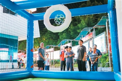 福建省科技馆“科学之夜”现场,青少年体验无人机足球。图源:福建省科技馆公众号