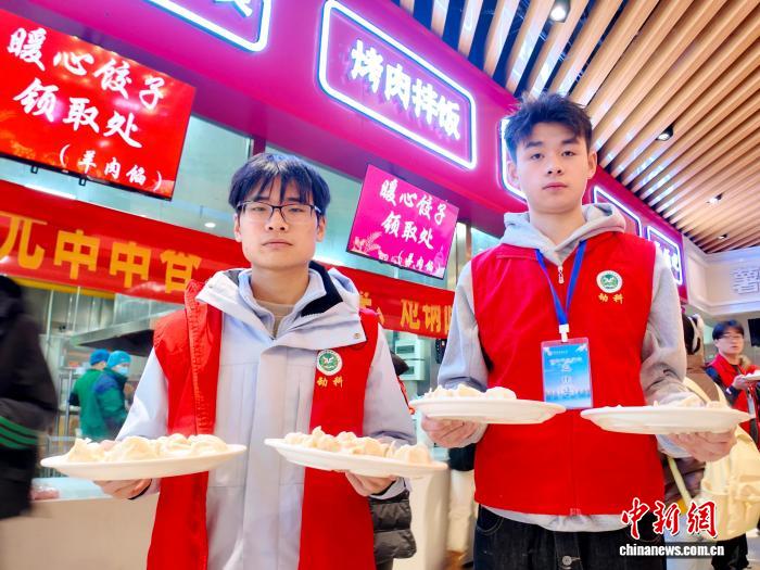 图为学生展示包好的饺子。中新社记者 李超庆 摄