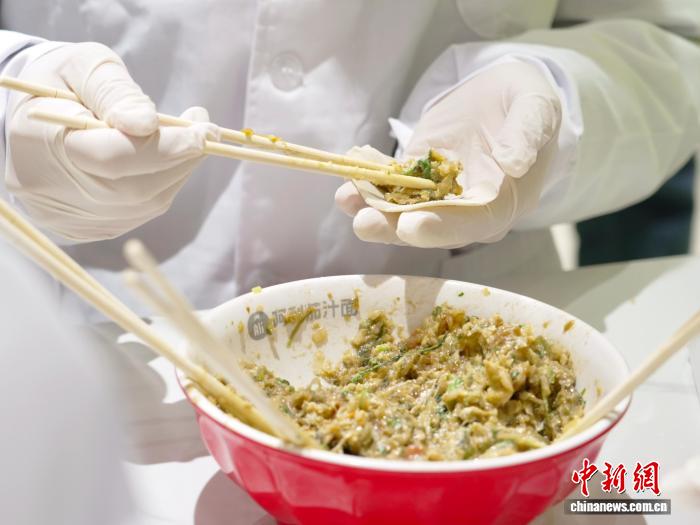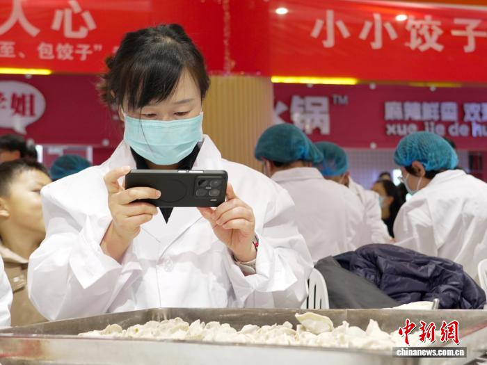 图为教师为包好的饺子拍照留念。王士豪 摄
